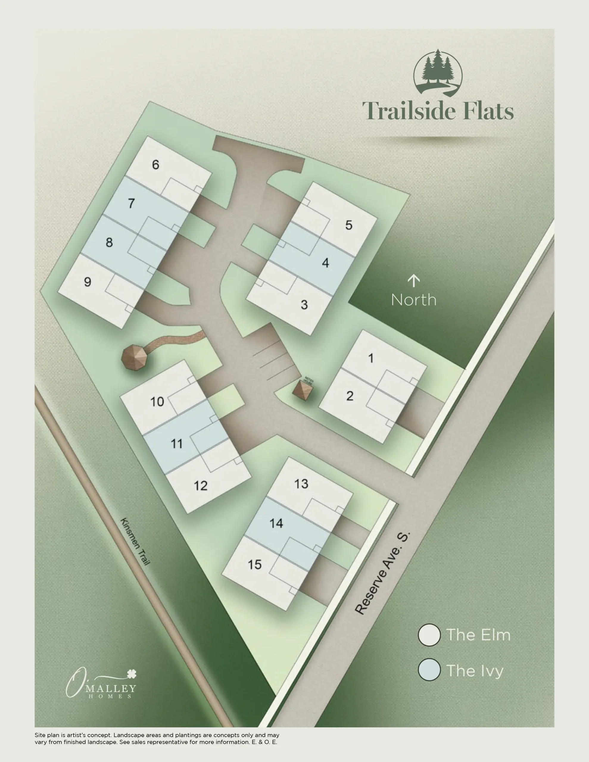 Your pathway home starts here. Trailside Flats features thoughtfully designed bungalow townhomes with generous 2-bedroom, 2-bathroom layouts, all on one level for easy, open-concept living. Inside, modern finishes create a fresh, refined feel, while outside, full-service seasonal maintenance including landscaping, snow removal, and lawn upkeep means more time to enjoy what matters most.